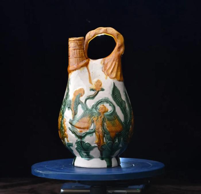 孫天舒:遼三彩與唐三彩同稱為三彩瓷器,從陶瓷歷史演進(jìn)角度講,遼瓷技藝承襲了唐代陶瓷遺風(fēng)。在三彩瓷器中具體表現(xiàn)為:一是工藝和技術(shù),遼三彩繼承了唐三彩的二次燒成工藝,先制坯高溫素?zé)?,再施低溫釉燒;二是裝飾技法,兩者都采用刻、剔、劃、印花等手法;三是釉色,遼三彩在顏色上部分延續(xù)了唐三彩的傳統(tǒng),常見于黃、綠、白等色調(diào);四是紋飾題材,遼三彩與唐三彩在紋飾圖案上都多見自然花草和動(dòng)物。