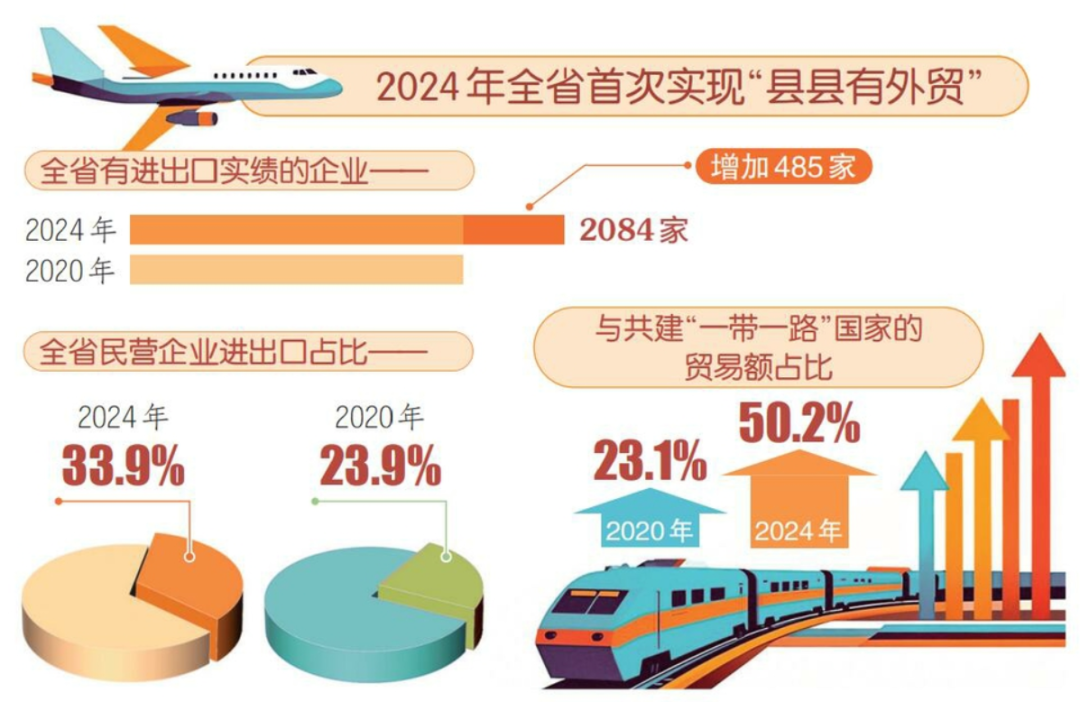 一面走出去,一面引進來。到2024年底,全省外商投資企業(yè)數(shù)量由2020年的500余家增長至近900家,合作的路子越走越寬。